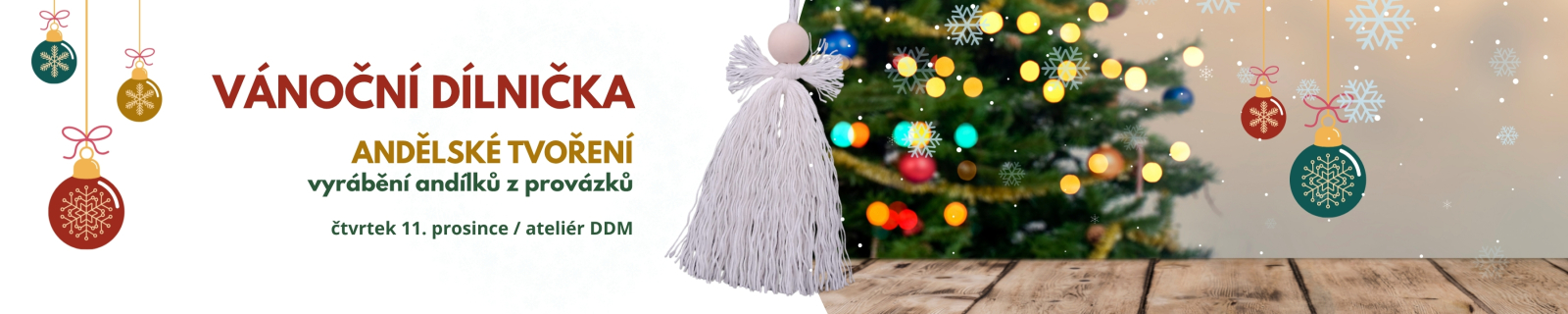 Přijďte si s námi užít vánoční atmosféru a vytvořit si vlastního andílka z macramé vlny! Čeká vás příjemné tvoření a chvilka klidu pro duši. Váš andílek může být krásnou vánoční dekorací nebo originálním dárkem pro vaše blízké. Materiál bude připraven – stačí si přinést dobrou náladu a chuť tvořit. Těšíme se na společné Andělské tvoření! Přihlašování probíhá on-line přes klientské centrum DDM.