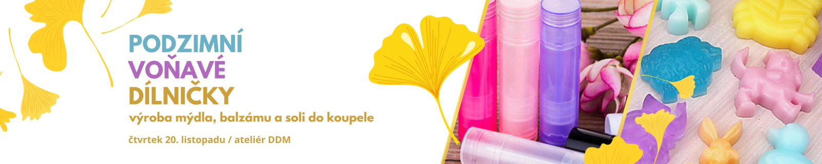 Zveme vás na kreativní odpoledne plné vůní, barev a pohody! Lektorka z Mýdlotéky U tří lilií vás provede kouzelným světem vůní a přírodních ingrediencí. Společně si vytvoříte tři voňavé výrobky: Sůl do koupele Glycerínové mýdlo Balzám na rty – z bambuckého másla a rostlinných olejů Každý výrobek si odnesete domů – jako malý dárek sobě nebo svým blízkým. Všechen materiál bude zajištěn, stačí si přinést úsměv a chuť tvořit. Přijďte si užít podzimní tvoření provoněné přírodou! Přihlašování probíhá on-line přes klientské centrum DDM. Těšíme se na Vás :)