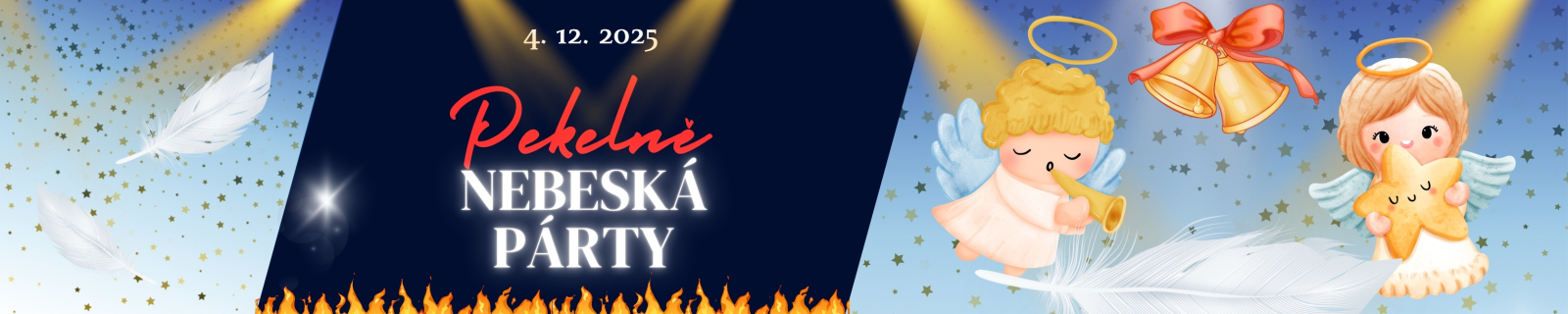 PEKELNĚ NEBESKÁ PÁRTY S DIDI JÁJOU! Přijď si užít dvě hodiny nebeského řádění i pekelné zábavy! Čekají tě soutěže, tančení a hudba s DIDI JÁJOU (DJ Jarda Brejl)! Kdy? 16:00 – 18:00 Vstupenka? Kostým anděla nebo čerta! Tak neváhej, nahoď křídla nebo rohy a přijď si užít PEKELNĚ DOBROU ZÁBAVU! Těšíme se na všechny malé čertíky i andílky!