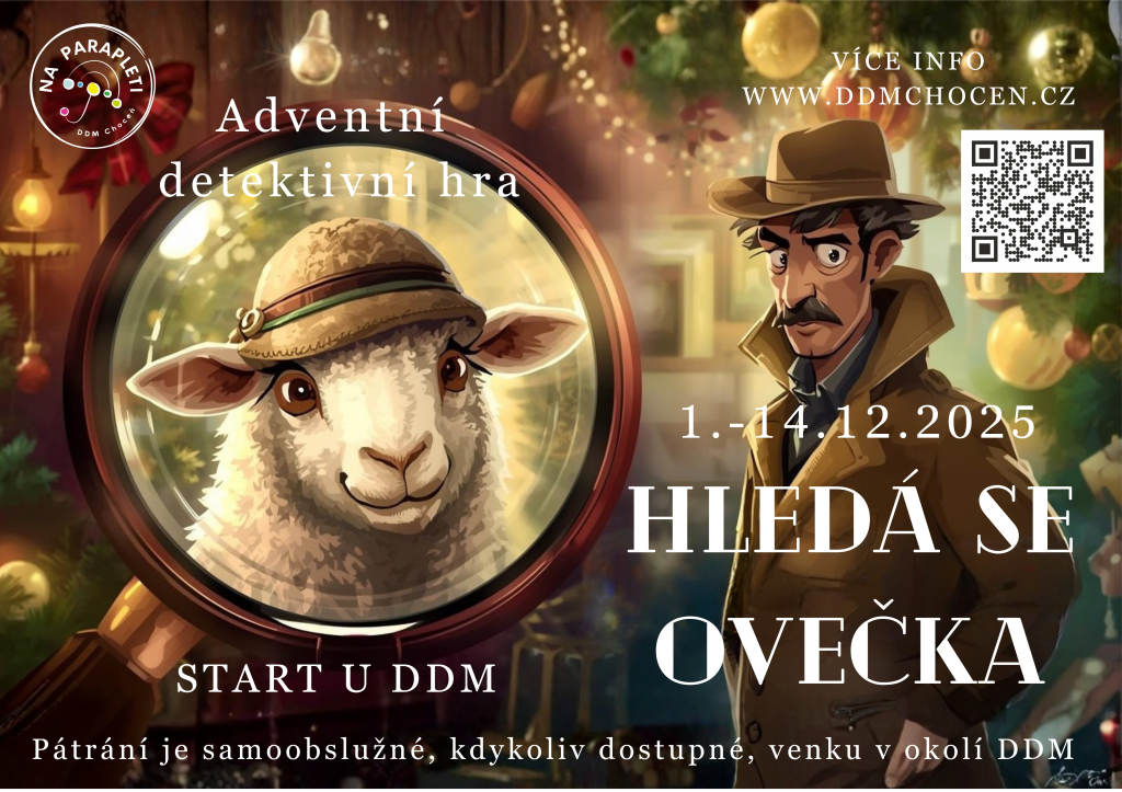 Dne 1.12.2025 se na vstupních dveřích DDM objeví pravidla hry. A první indície, kde hledat zatoulanou ovečku.